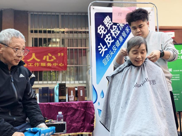 便民服务板块人气十足,理发、磨刀、修鞋、缝补等传统项目备受青睐。志愿者手艺娴熟,服务细致,赢得居民尤其是老年居民的广泛认可。针对社区行动不便的老人,志愿者主动延伸服务触角,携带专业工具上门服务。“感谢你们周到的服务!”居民杜爹爹理完发后,对上门服务的志愿者连连致谢。