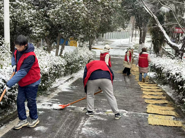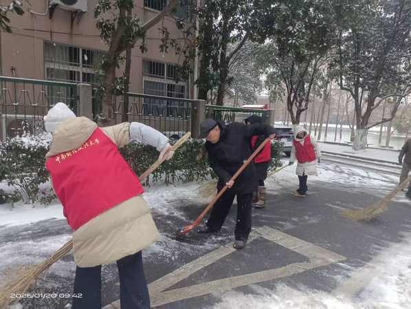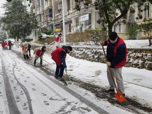 雪还在静静飘落,但南湖社区北苑小区的每一条道路都已畅通无阻,每一户居民的家中都暖意融融。雪地里,红色的志愿马甲依旧在移动,像一簇簇跳动的火焰。社区工作人员、居民志愿者、青少年们用双手铲开的不仅是积雪,更是冬日的严寒;网格员们一次次上门服务,用真心换真情,让这场突如其来的风雪,化作了凝聚社区温情的纽带。雪落无声,情暖南湖,在这场与风雪的温情较量中,社区的凝聚力与向心力,恰似冬日暖阳,静静温暖着每一个人的心。
