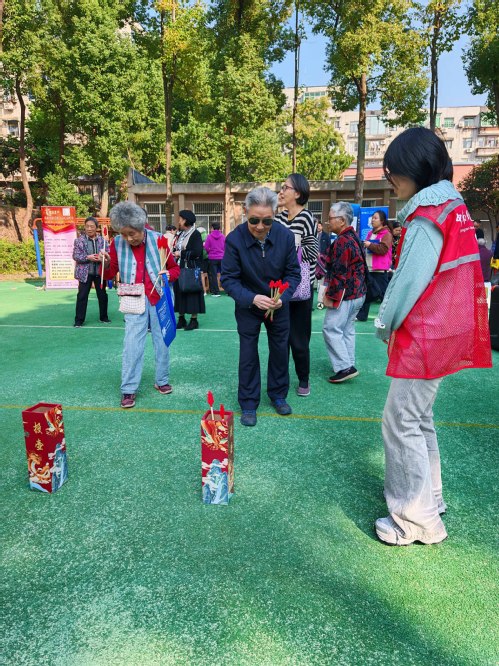 上午9点,中南财大南湖校区老干处操场已是一派热闹景象。老人们精神抖擞地齐聚赛场,在社工的带领下,一套简单的拍打操热身活动迅速点燃了现场气氛,也为大家活动筋骨、安全参赛做好了准备。社区工作人员随后详细讲解了各项比赛规则与安全注意事项,确保活动顺利开展。