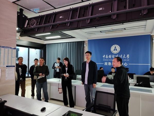 随后,调研组一行参观我校消防监控中心、安防监控中心、总控机房等重要点位,高度称赞我校技防建设智能化水平。