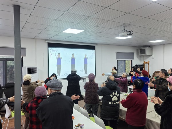 随后,老年服务站的社工带领大家进行健康拍打操,长者们跟随节奏活动筋骨,现场气氛轻松愉悦。